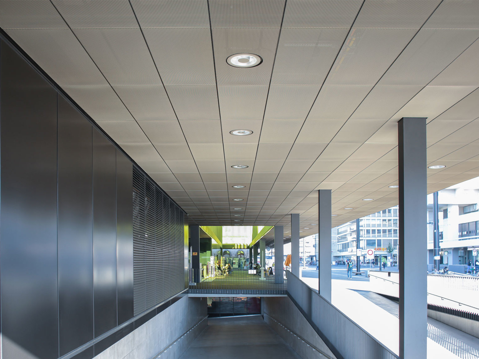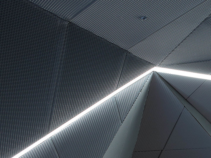 Bei der Planung einer Streckmetalldecke ist darauf zu achten, dass bei einer normal gestreckten Ausführung durch die Dreidimensionalität je nach Blickrichtung ein offenes oder geschlossenes Deckenbild entsteht. Hierbei handelt es sich um die Tunnelrichtung.