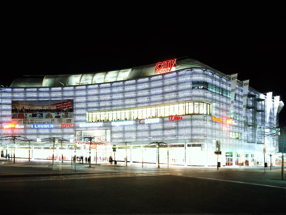 Als die Gründer der durlum GmbH 1948 die ersten Leuchtstofflampen aus den USA importierten und begannen, Leuchten für die damals revolutionäre, neue Lichtquelle zu entwickeln, legten sie den Grundstein für durlums Erfolgsgeschichte. Unsere Begeisterung für modernste Lichttechnik ist ungebrochen und die langjährige Erfahrung mit innovativen Lichtlösungen widerspiegelt sich in wegweisenden Projekten, wie z.B. dem 2002 eröffneten City Point Kassel. durlum setzte für das Einkaufszentrum eine komplexe LED-Fassadenbeleuchtung mit insgesamt 545 LED-Einheiten um. Jede der ca. 3,3 m langen Einheiten ist dabei über ein KNX-System programmier- und ansteuerbar und lässt die Fassade durch das gezielte Mischen von weißen und farbigen Leuchtdioden szenisch in ca. 3700K erstrahlen. Was heute wenig spektakulär klingt, war vor zwanzig Jahren ein gewagter Schritt, war es doch erst 1995 gelungen, weißes Licht aus LEDs zu gewinnen, nur zwei Jahre bevor das Einkaufszentrum in Planung ging.