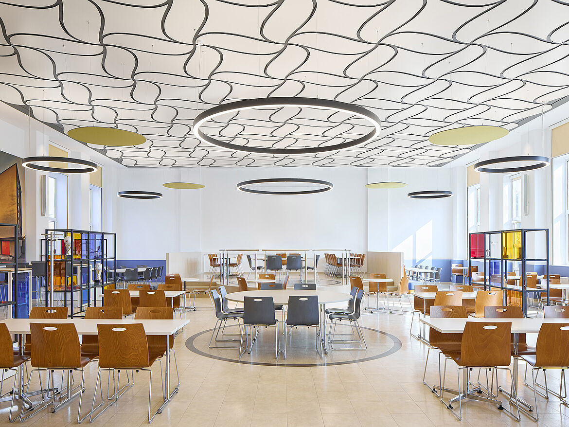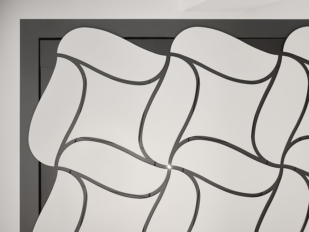 Die kreative Metalldecke FLUID setzt der Strenge herkömmlicher Decken ein fließendes, harmonisches Raumbild entgegen. So erhalten Räume einen einzigartigen Charakter. Mit ihren geschwungenen Kanten und verschiedenen geometrischen Formen schafft die Designdecke völlig neuartige Gestaltungsmöglichkeiten.