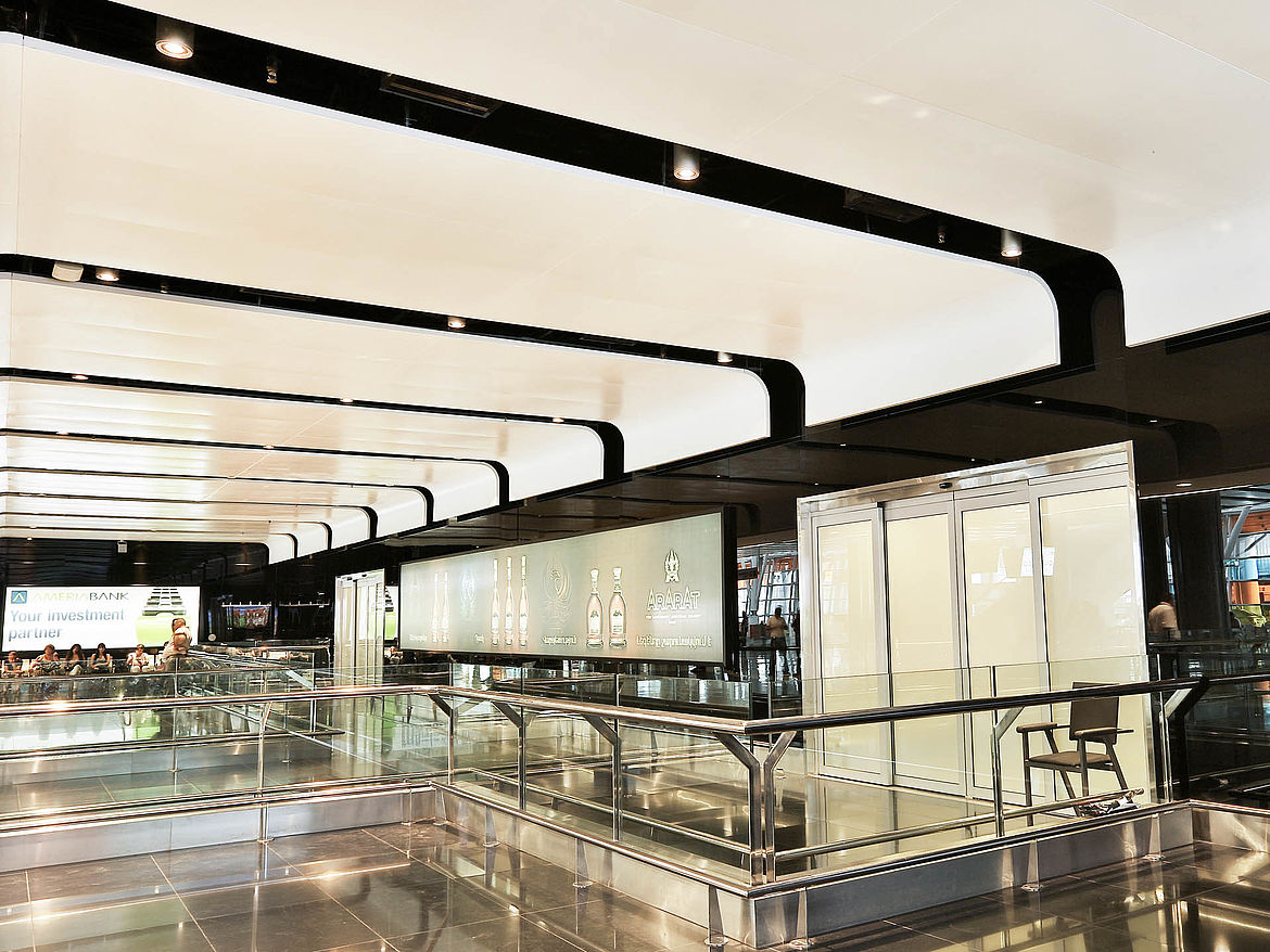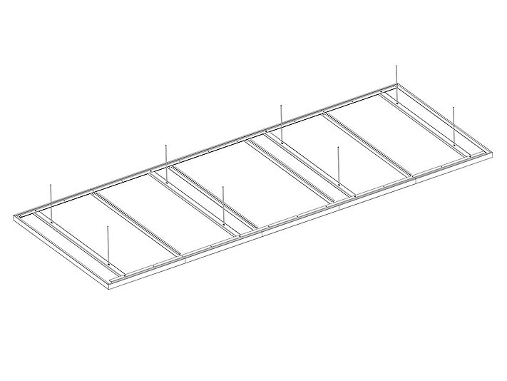 dur-SOLO Typ 4 ist das variabelste Deckensegel von durlum. Beliebig viele Platten werden an den langen Seiten so zusammen gesetzt, dass in der Gestaltung kaum Grenzen gesetzt sind. Der schwerelose Charakter wird durch die unauffällige Unterkonstruktion der im Segel integrierten Traversen unterstrichen. dur-SOLO Typ 4 eignet sich unter anderem als Kühldecke in Bürogebäuden, oder für Sanierungen.