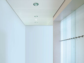 Langfeldplatten sind die klassischste Form der Metalldecken. Gegliedert in Raum- und Flursysteme, erfüllen unsere Langfeldplatten die verschiedensten Anforderungen und sind von einfachen Klemm- bis zu hochkomplexen Systemen erhältlich. Optional können unsere Langfeldplatten auch beispielsweise für akustische und gestalterische Anforderungen perforiert oder bedruckt werden.