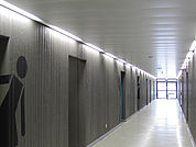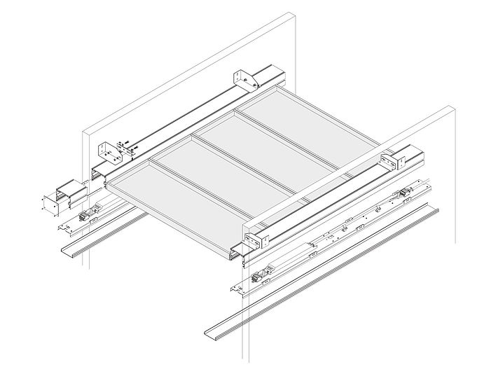 FS-OMEGA wurde extra für Flure konzipiert. Die einzelnen Langfeldplatten werden durch die Lichtkanäle getragen, die sich an beiden Flurseiten befinden. Das Einhängesystem ist dabei einfach und werkzeuglos zu demontieren. Optional kann FS-OMEGA auch nur mit einseitig angebrachtem Lichtkanal ausgeführt werden.