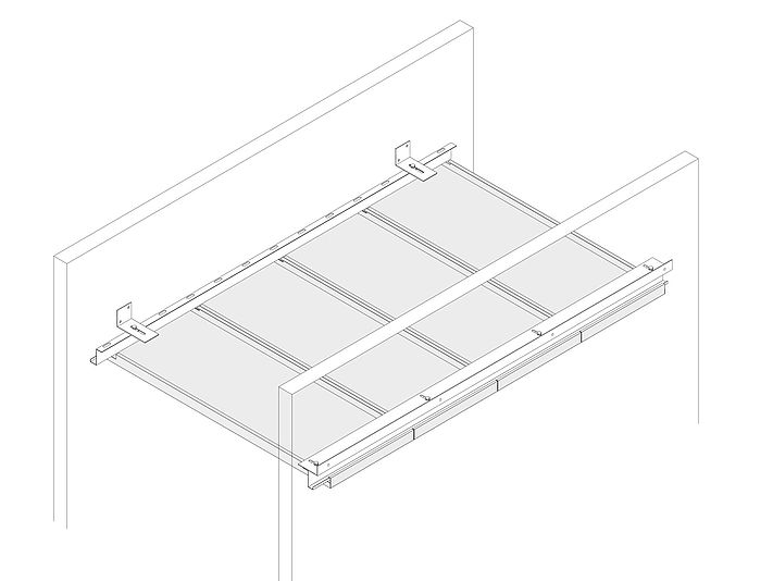 Die Auflage-/Hakensysteme FS4.2 und FS4.5 KS sind Metalldecken, die speziell für sehr breite Flure und Flurerweiterungen konzipiert wurden. Durch die verdeckte Einhängekonstruktion ergibt sich ein gleichmäßiges Deckenbild. Das System FS4.5 KS ist zusätzlich optional mit Kühlmäandern als Kühldecke ausführbar.