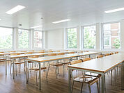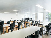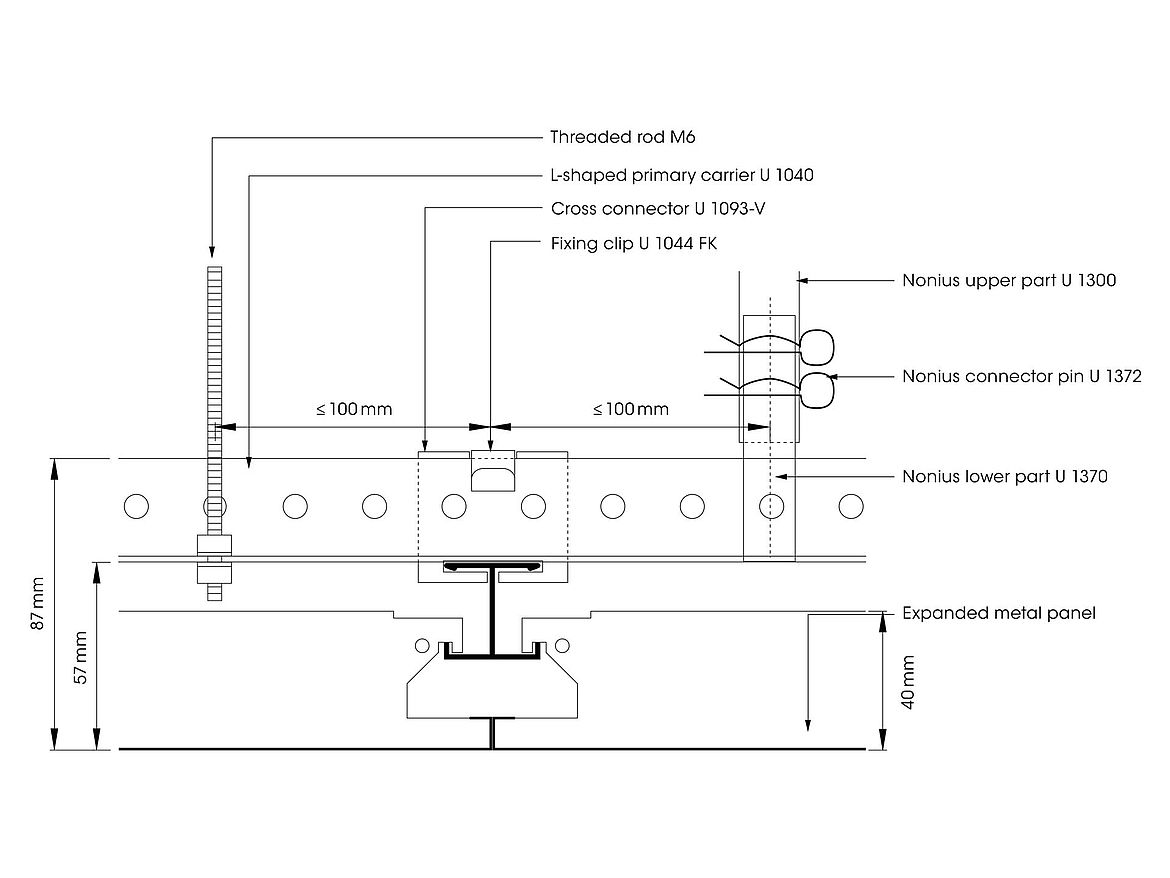 Das moderne Doppelhakensystem S10 H eignet sich für die unterschiedlichsten Anwendungen. Die Metalldecke verfügt standardmäßig über eine nicht sichtbare Unterkonstruktion. Die einzelnen Platten werden längsseitig formschlüssig und spannungsfrei in das System eingehängt.
