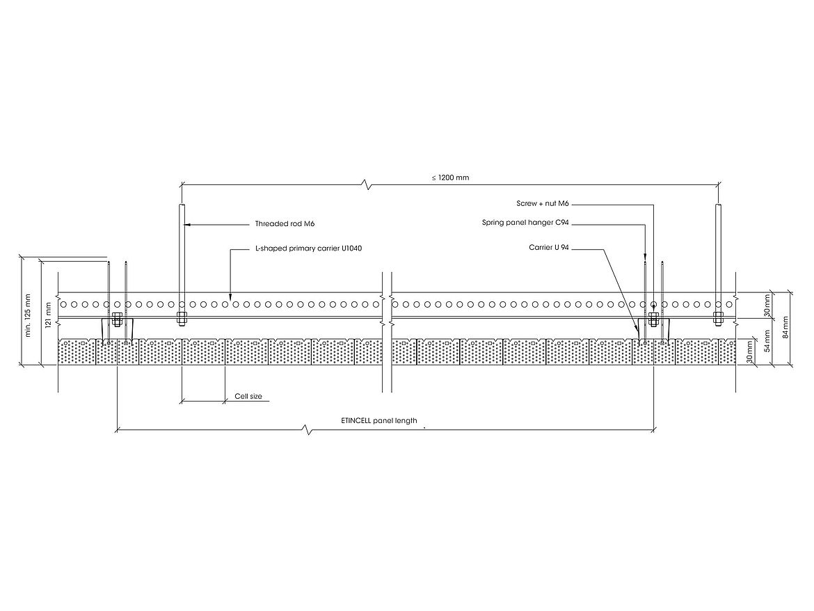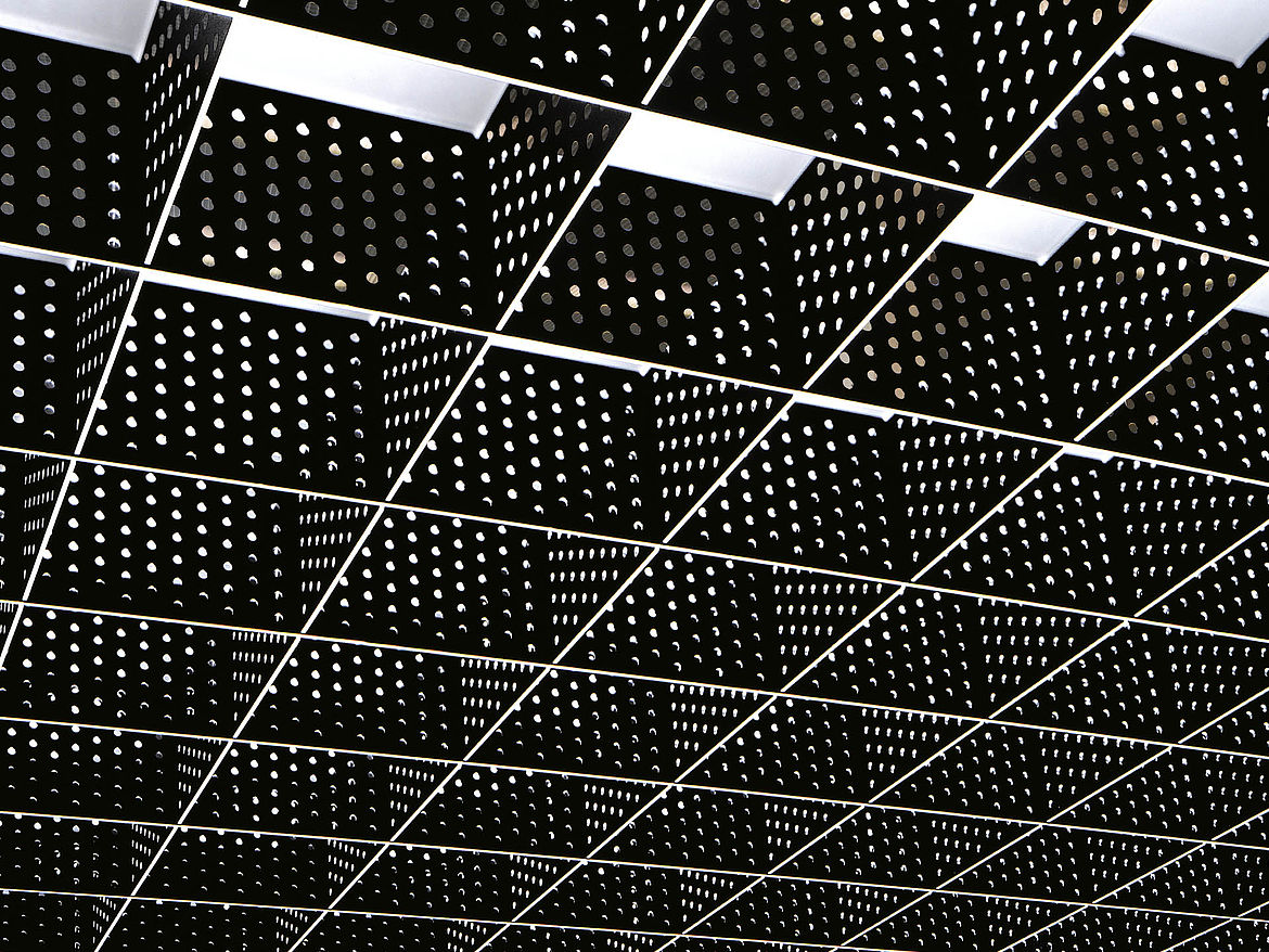 Das Einstegraster ETINCELL ist ausgezeichnet für Projekte geeignet, die besondere Ansprüche an eine dekorative Decke stellen. Durch die Perforation der einzelnen Rasterstege entstehen Reflexionen, die zur Lichtlenkung genutzt werden können.