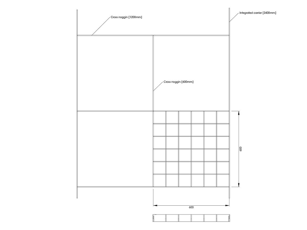 1200 x 600mm (integrierte + U94 Trageschiene | Flurvariante)