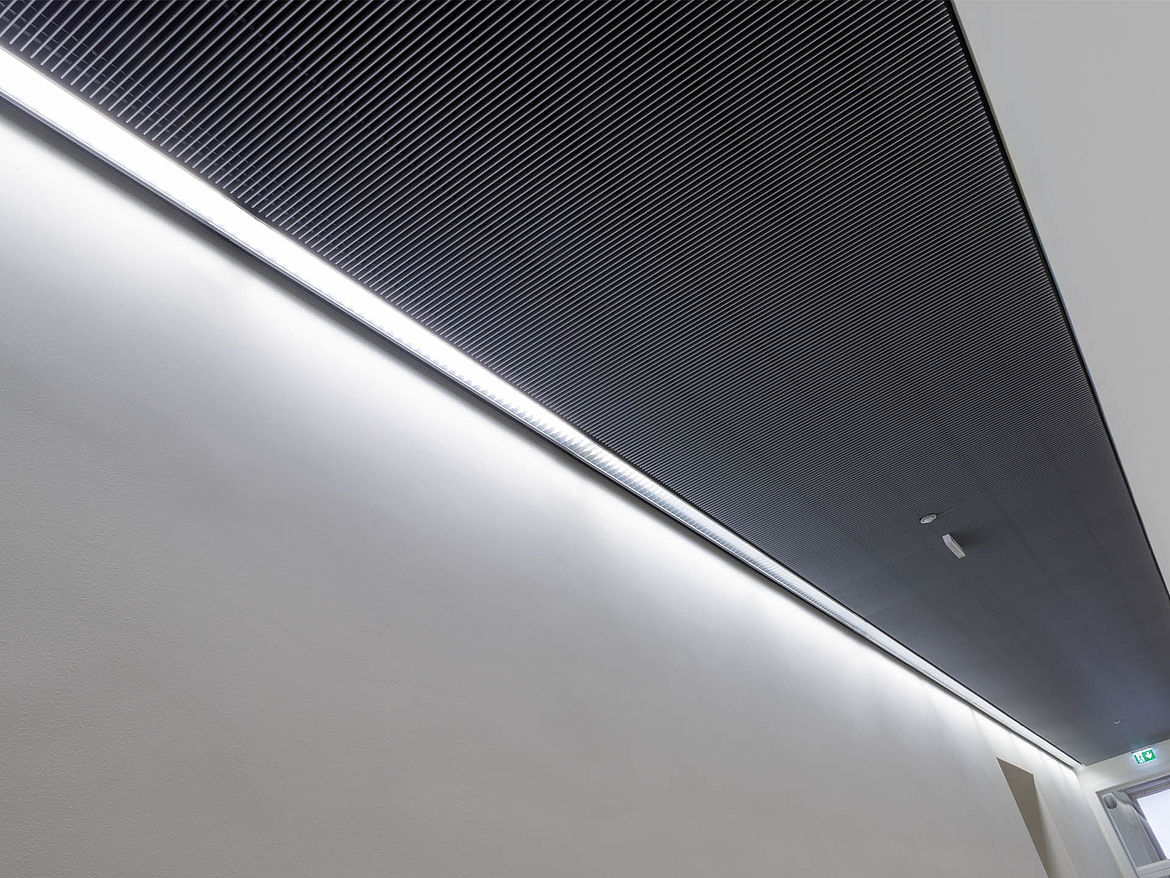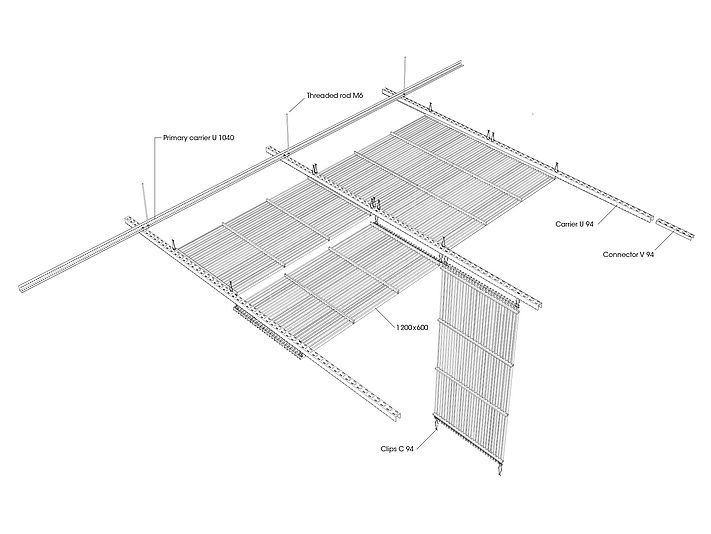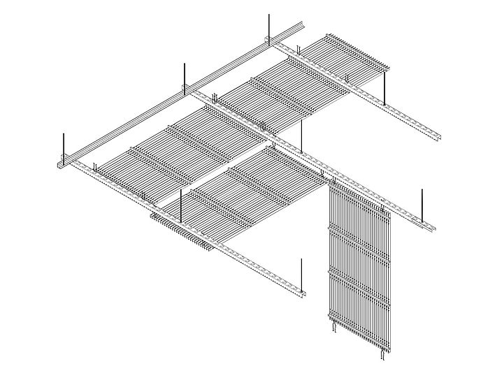 Die offene Rasterdecke STAR setzt Akzente in jeder Architektur. Die Rasterdecke kann horizontal oder vertikal verlegt werden. Die Kombination der Lamellen und die klar definierten Kanten erzeugt ein einzigartiges Erscheinungsbild. Werden die Lamellen verschiedenfarbig lackiert, entstehen in Verbindung mit den zurückversetzten schwarzen Traversen vollkommen neue Deckendesigns.