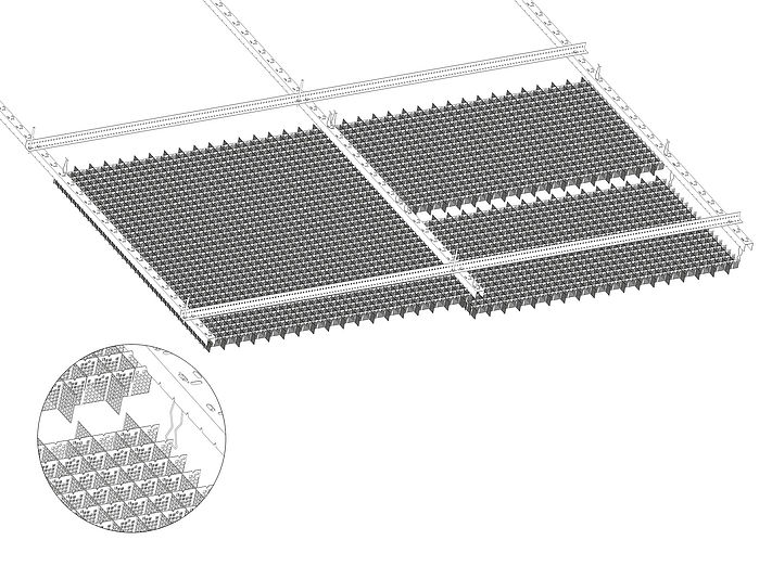 Die „geflochtene“ Metallrasterdecke TICELL ist ein Einstegraster, das jedem Projekt ein individuelles Design von metallischer, moderner Leichtigkeit verleiht. Die Oberfläche der Aluminiumlamellen wird durch einen speziellen Prozess so strukturiert, dass die Stanzkanten den Lichtfluss reflektieren und so für eine einzigartige Optik sorgen.