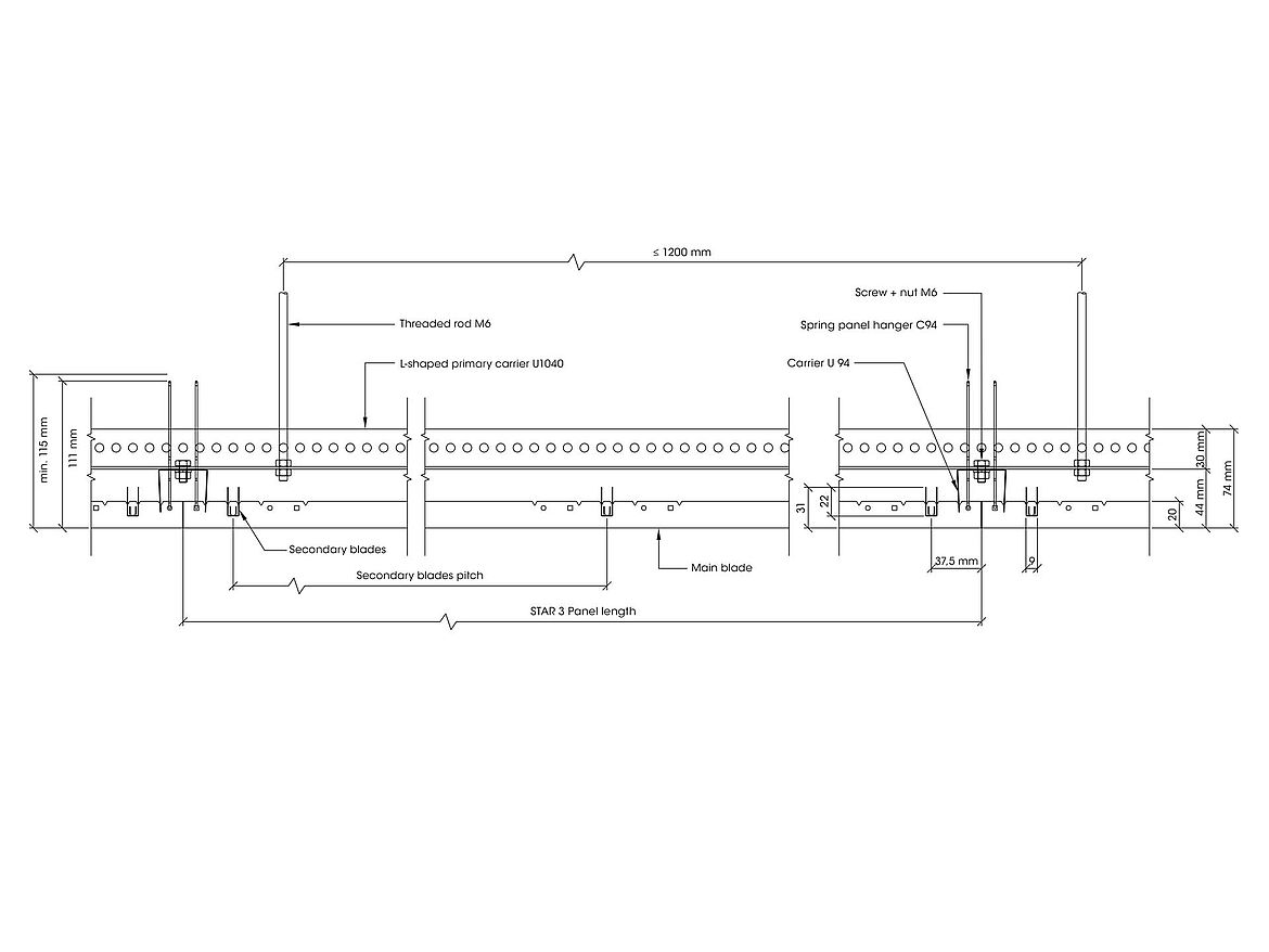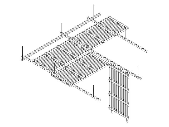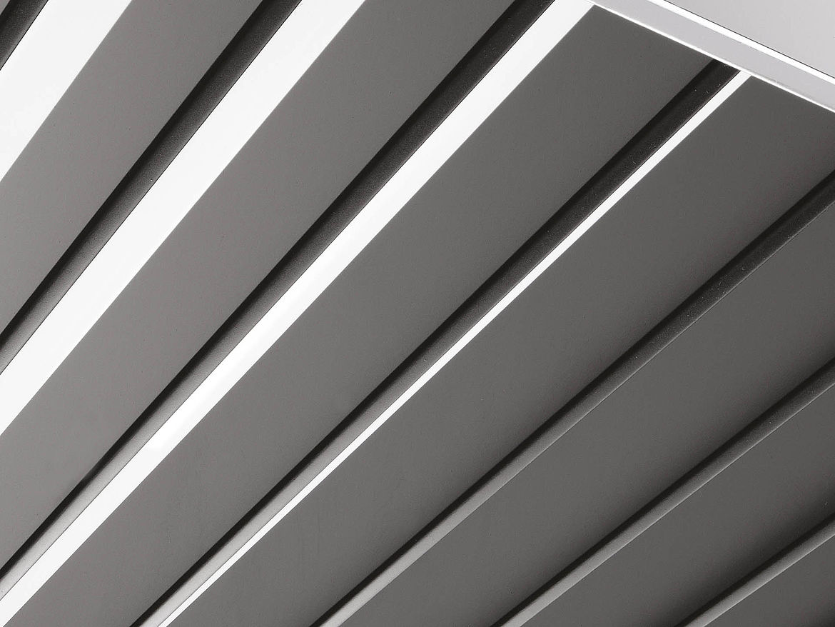 VARIO 3 ist eine stabförmige Decke von hoher Qualität und elegantem, zeitgemäßem Design. Die speziellen Ausstanzungen und die scharfen Kantungen garantieren eine optimale lineare Ausrichtung der Lamellen untereinander sowie eine perfekte Steifheit. Die Lamellen können in Reihen- oder Modulanordnung ausgeführt werden, so kann die Textur hervorgehoben werden.