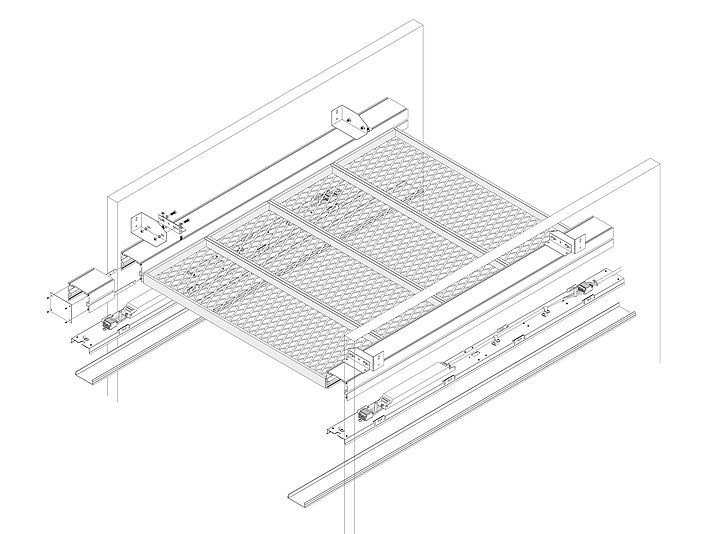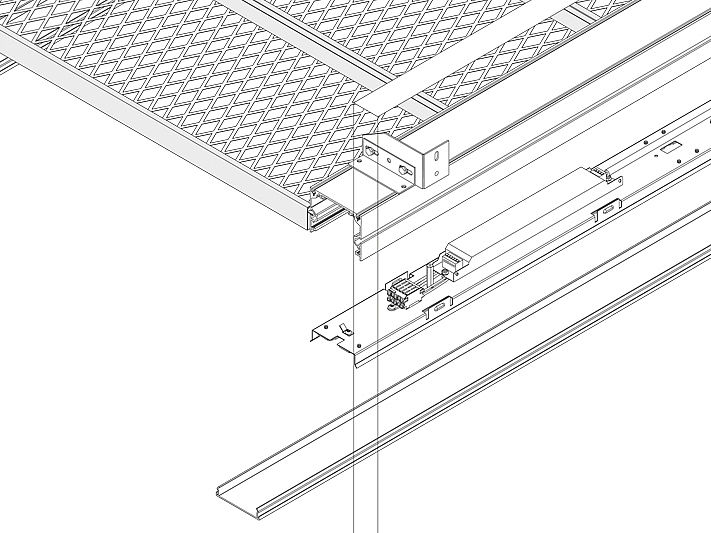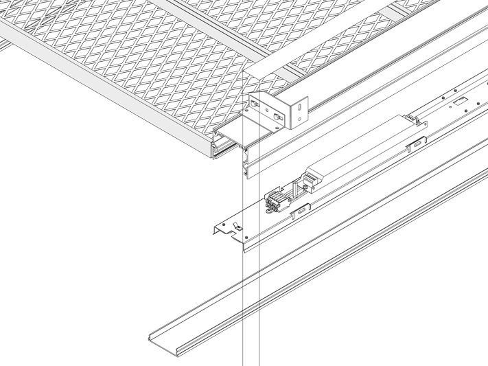 Das Decken- und Lichtsystem FS-OMEGA RHOMBOS ist für den Einsatz in Fluren optimiert. Die Streckmetallelemente werden dabei durch die an beiden Flurseiten angebrachten OMEGA Lichtkanäle getragen und bilden so eine harmonische Einheit. In den Lichtkanälen lassen sich neben der Beleuchtung auch Haustechnik wie z.B. Lüftung, Sprinkler oder Leitungen integrieren.
