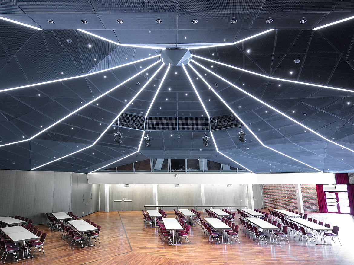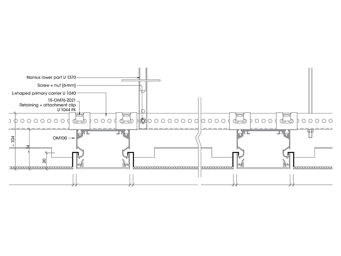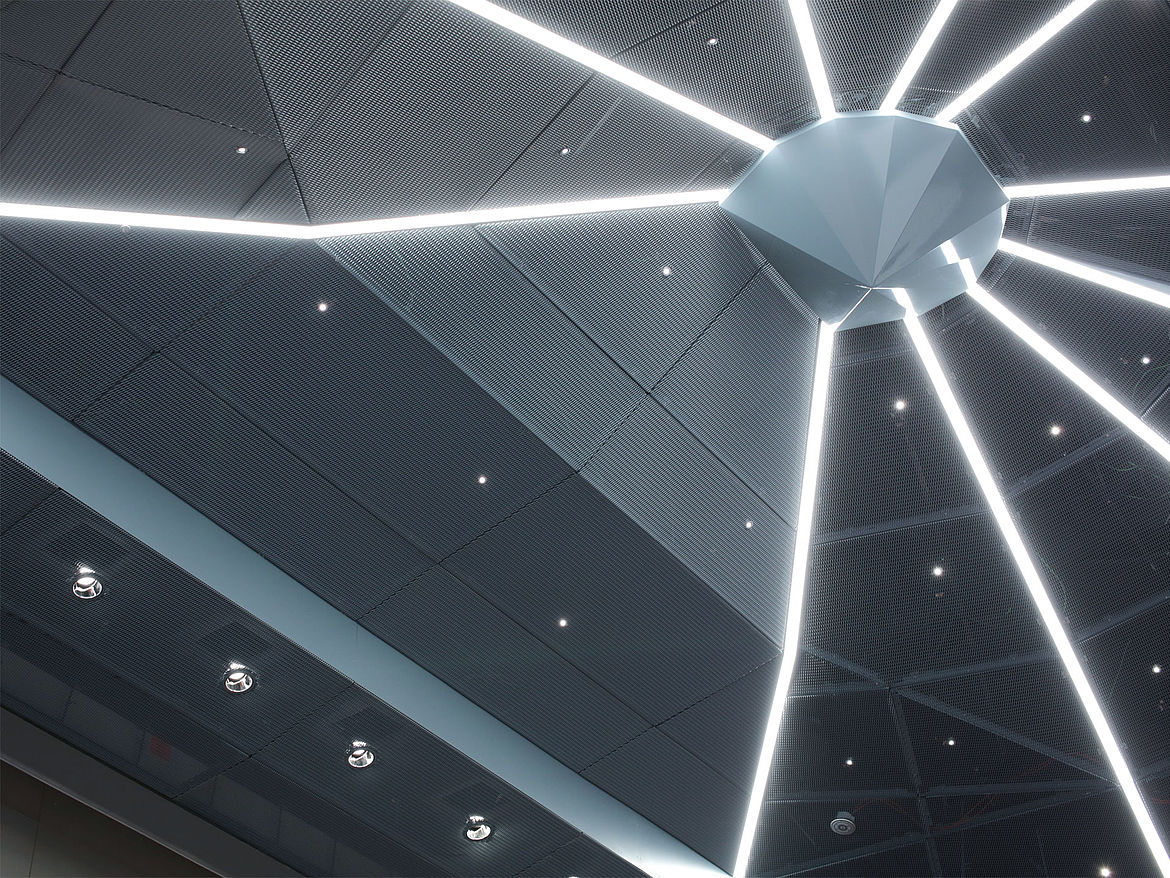 S-OMEGA RHOMBOS ist ein lineares Streckmetall-Einhängesystem und wird durch die integrierten OMEGA-Lichtkanäle getragen. Die vielseitige Decke-Licht-Kombination eignet sich insbesondere für repräsentative Anwendungen und ist mit ihren flexiblen Gestaltungsmöglichkeiten einfach und werkzeuglos zu demontieren.