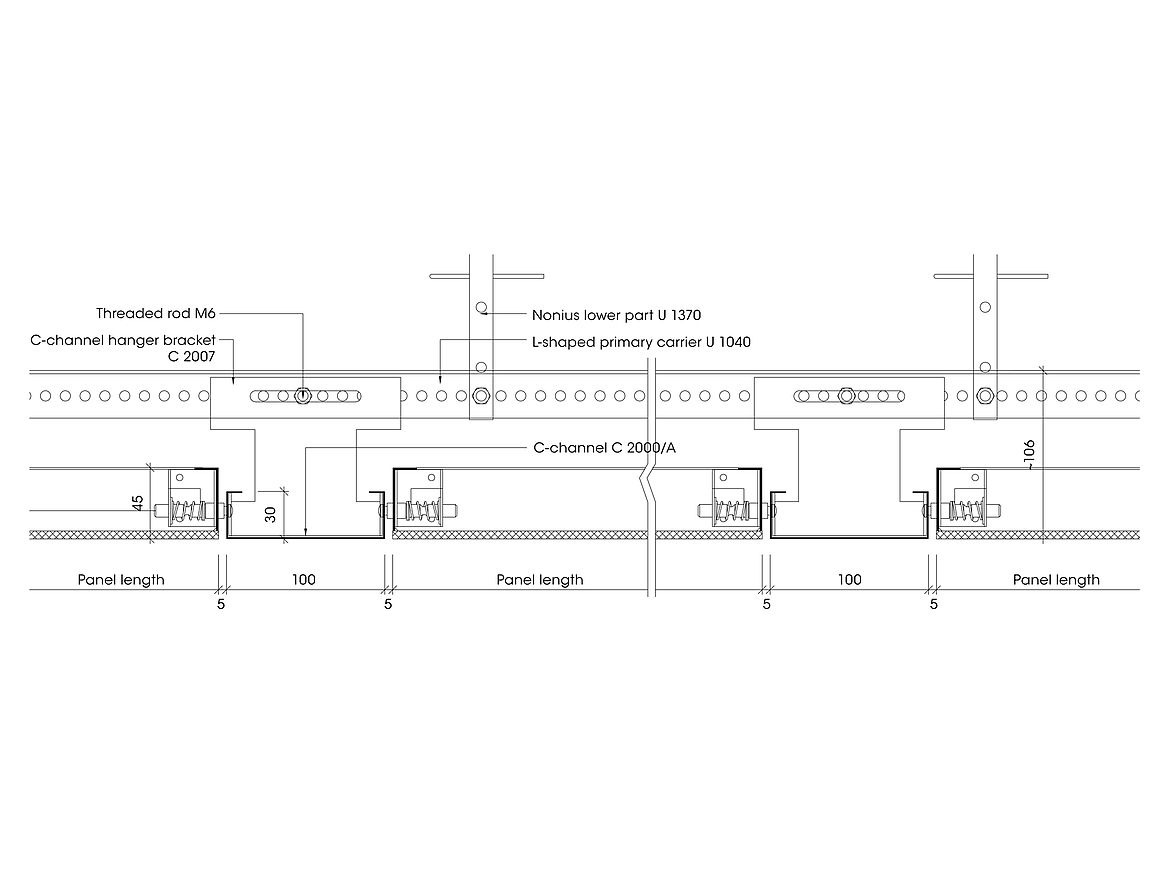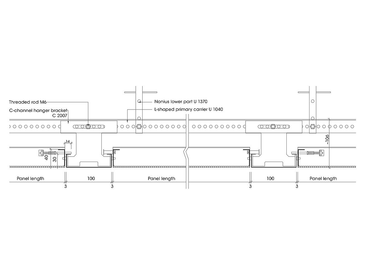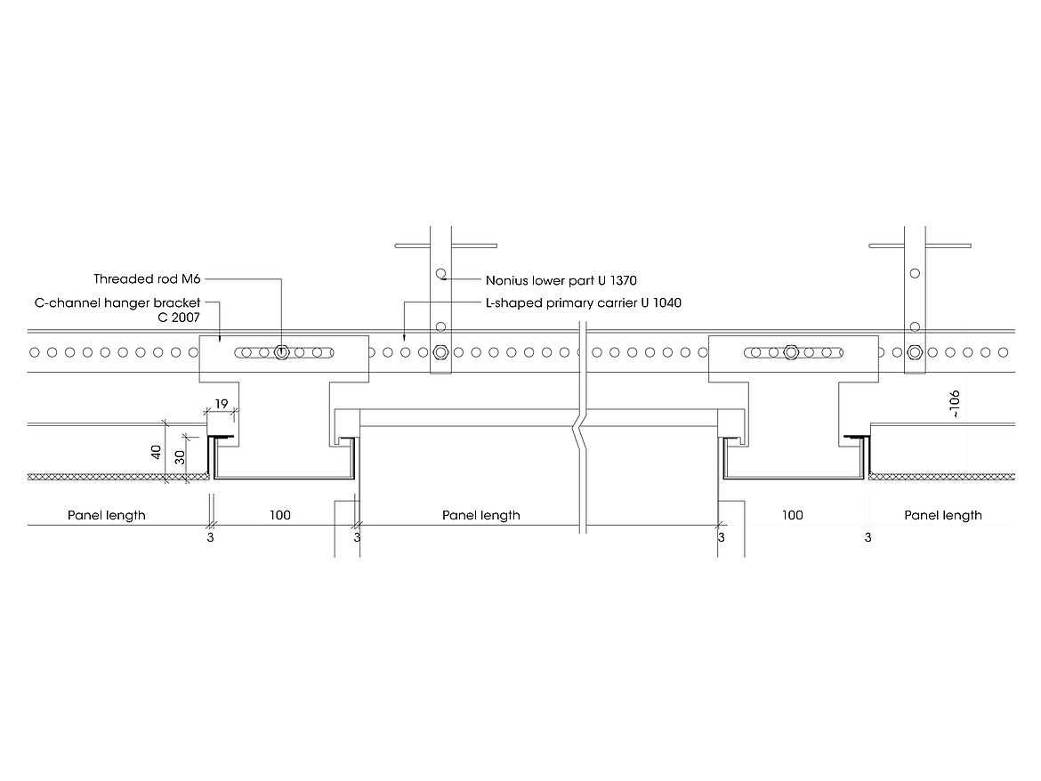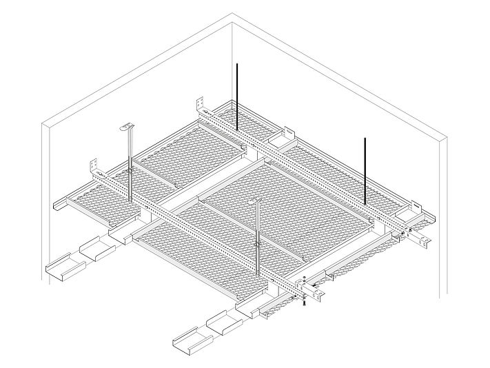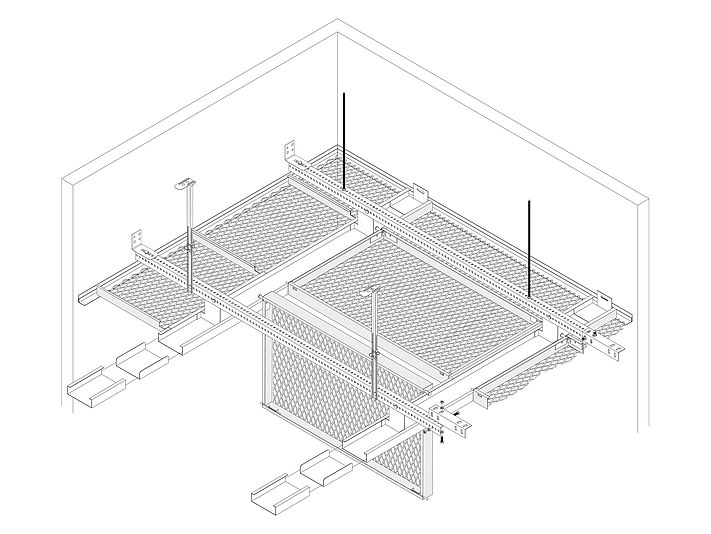 S5 RHOMBOS ist eine Streckmetalldecke mit linearem Bandrastersystem. Die Unterkonstruktion ist parallel verlaufend und sichtbar. Das System eignet sich besonders für Bürogebäude, da sich die Raumaufteilung einfach ändern lässt. Dazu werden die Trennwände nach Bedarf an den Bandrasterprofilen befestigt. Optional ist dieses System auch abklapp- und verschiebbar erhältlich.