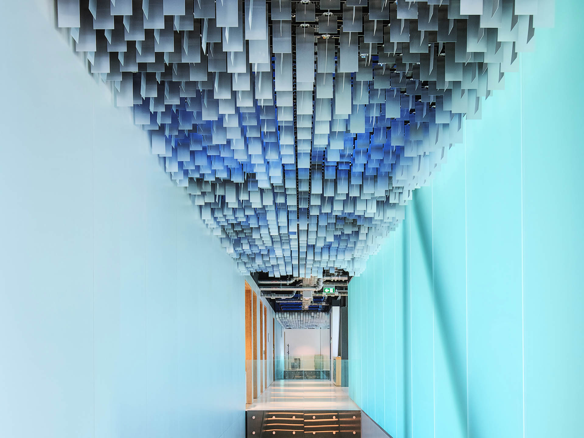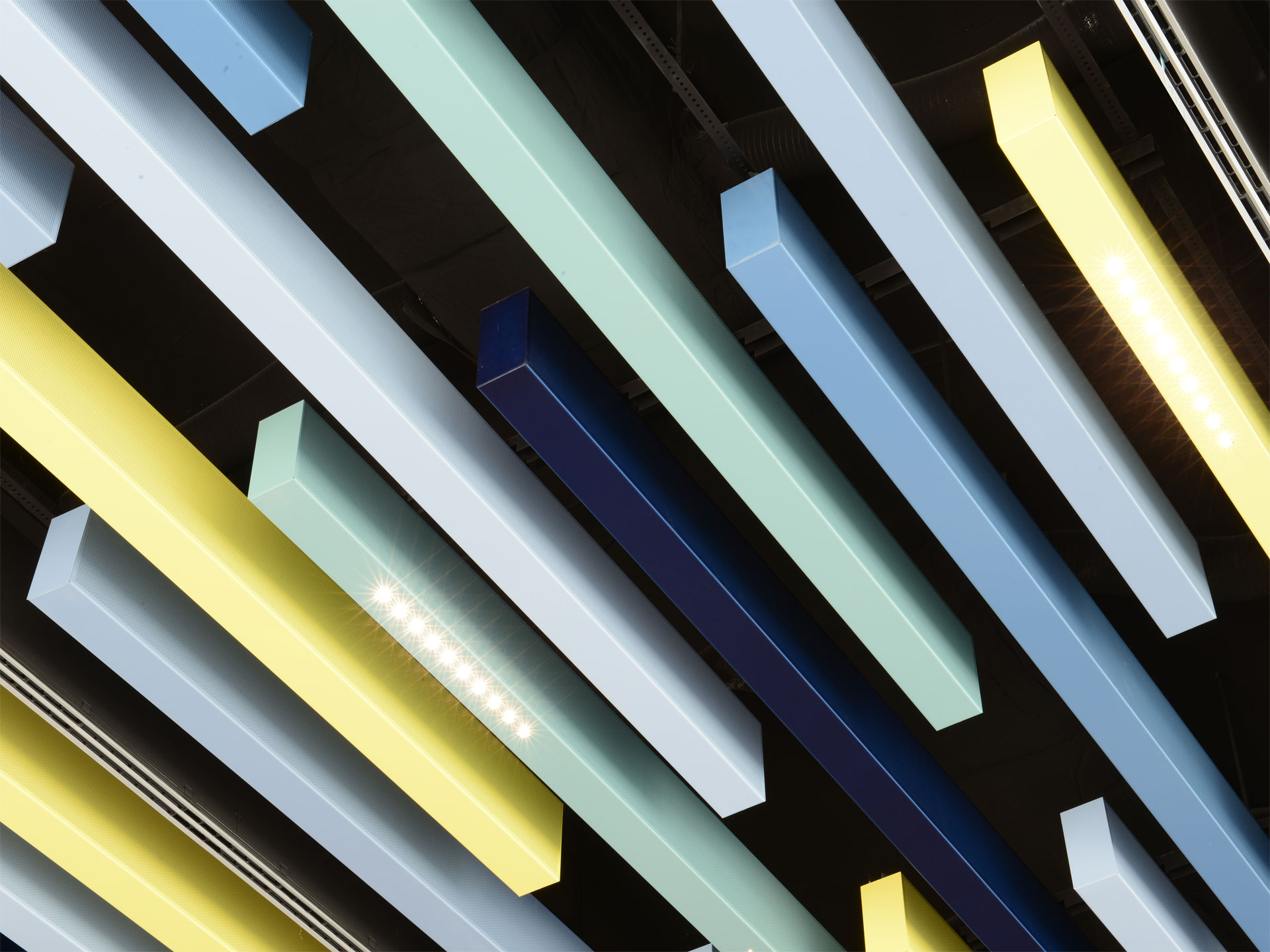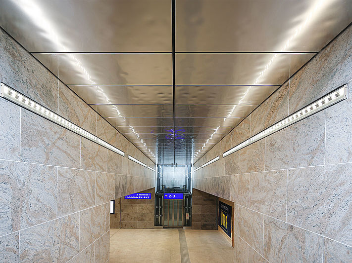 Bei einer eloxierten Deckenoberfläche handelt es sich um Aluminium, das elektrolytisch oxidiert wurde. Nachdem das Aluminium vorbehandelt wurde, erfolgt die Eloxierung – üblicherweise mit Gleichstrom in Schwefelsäure. Dabei entsteht eine Oxidschicht, die fest mit dem Aluminium verbunden ist. Es handelt sich also um ein Oxidationsverfahren und nicht um eine Beschichtung der Deckenoberfläche. Die Materialoberfläche ist ähnlich wie bei Holz sichtbar und nicht durch eine Beschichtung verdeckt.