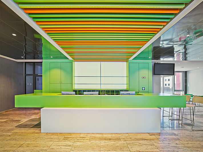 durlum bietet sowohl bandeloxierte wie auch stückeloxierte Metalldecken und Wandverkleidungen an.