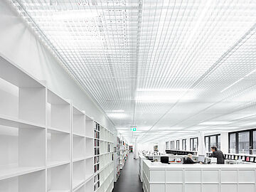 Das Einstegraster TICELL verleiht den Räumen eine zeitgemäße Leichtigkeit, reflektiert das Licht auf besondere Weise und erzeugt dadurch eine unverwechselbare Optik. Das ausgewogene Verhältnis von Rasterzellengröße und -höhe sorgt für ideale Lichtdurchlässigkeit und betont die architektonische Offenheit.