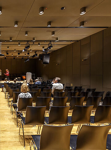 Akustisch wirksame Langfeldplatten in einem kundenspezifischen Deckensystem