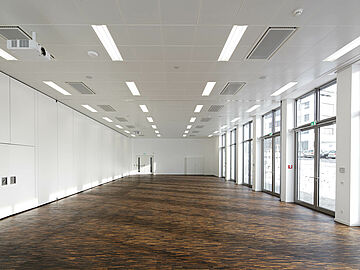 POLYLAM® Vertikallamellen als Wandverkleidung und offene Decke ausgeführt: