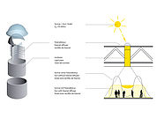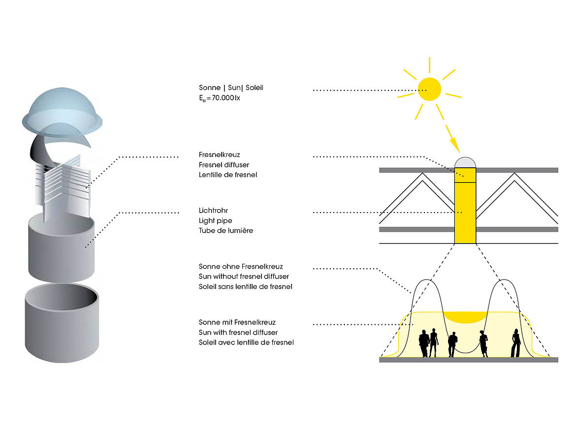LIGHT PIPE offers the option of redirecting natural light into the room with simple methods. The Fresnel diffuser at the top of the daylight pipe ensures an even lighting level even during sunlight by suppressing the incident light under flat angles and producing depth radiation with simultaneous improvement of efficiency.