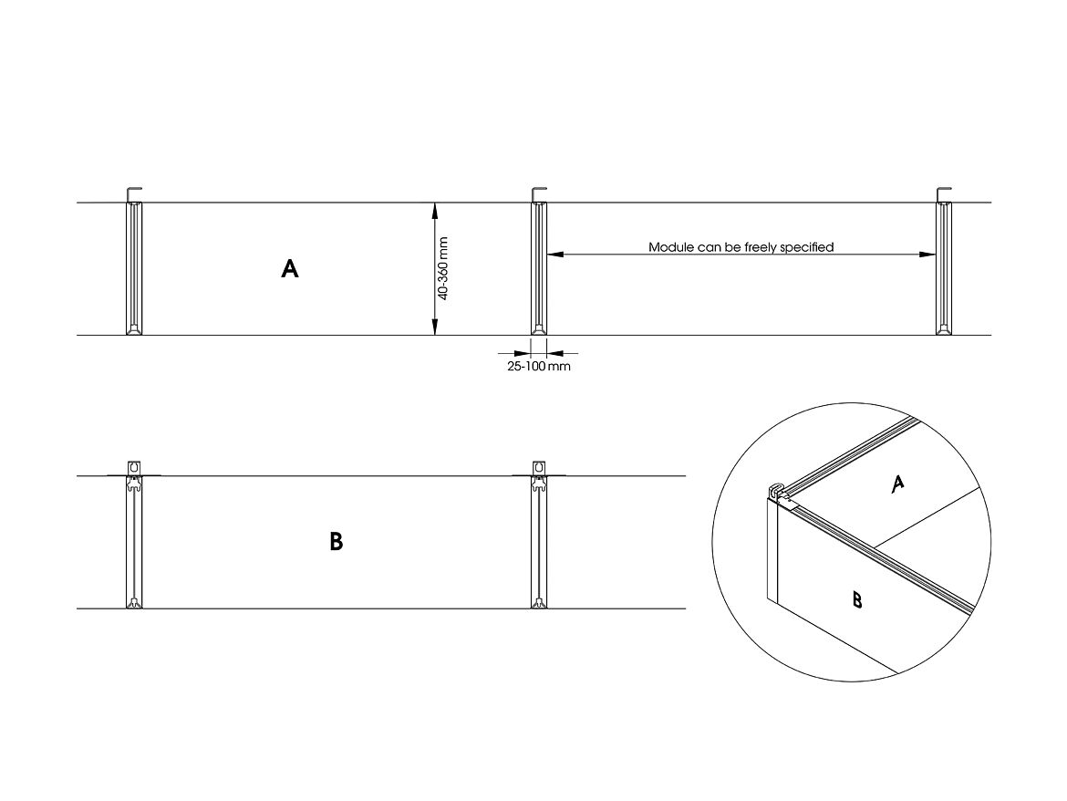 Width: 40, 63, 100 mm (other widths of 30 – 100 mm on request)